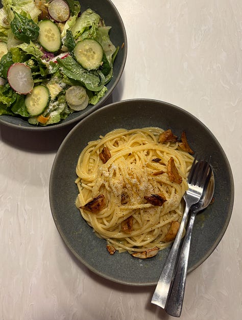 I’ve also been really pleased with how I’ve been feeding myself while here. It’s been so long since I’ve cooked just for me and on my own schedule, I’ve gone a little more ambitious in the kitchen than I thought I’d be. It’s not fancy but somehow I haven’t wasted any of my produce so far (a true feat for me) and when I’m chuffed over the simple act of eating the things I bought, I remember it’s a lot easier to do when your only focus is just to exist as an artist.